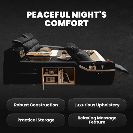 I'm head over heels for this bed! From soothing massages to crystal-clear podcasts via Bluetooth speakers, it's all here. Not forgetting the game-changing storage�it�s pure genius!