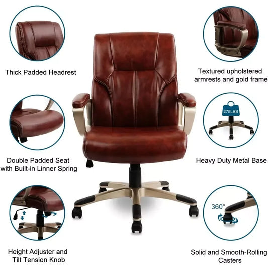 Brown High Back Executive Office Chair – PU Leather, Lumbar Support, Ergonomic - DSARD