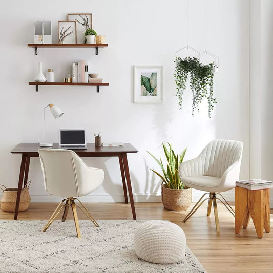 Mid-Century Modern Swivel Desk Chair, Boucle Upholstered, No Wheels - DSARD