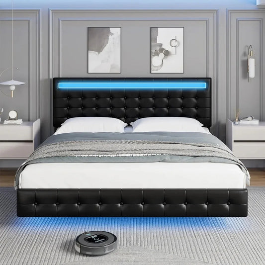 Luxury Queen LED Floating Bed Frame with USB and Type-C Charging Ports - DSARD
