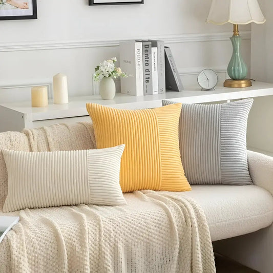Set of 2 Corduroy Patchwork Throw Pillow Covers with Invisible Zipper