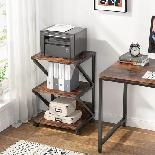 3-Tier Rolling Printer Cart with Storage Shelves and Wheels