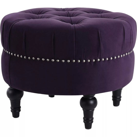 Lux Tufted Round Ottoman with Nailhead Trim, Purple Velvet, 25-Inch - DSARD