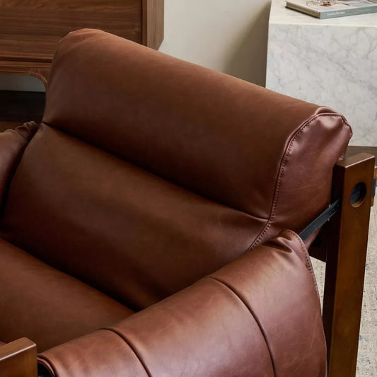 Vintage Solid Wood Lounge Chair with Retro Leather & Deep Cushioned Seat - DSARD