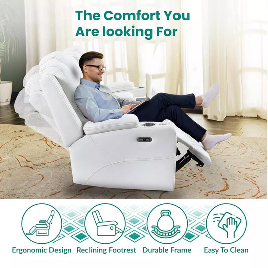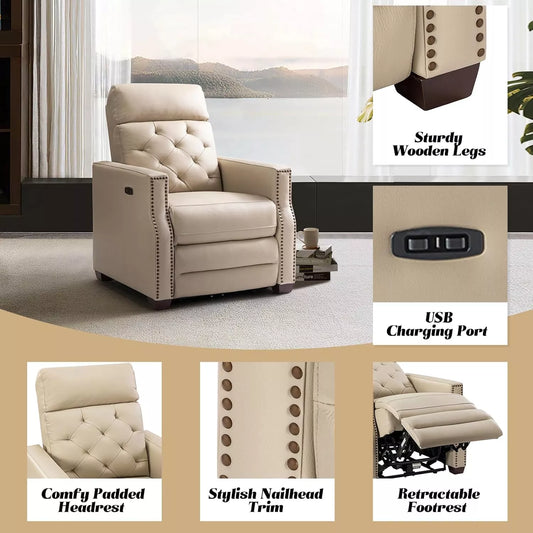 Genuine Leather Power Recliner Chair with USB, Tufted Nailhead Lounge Seat - DSARD