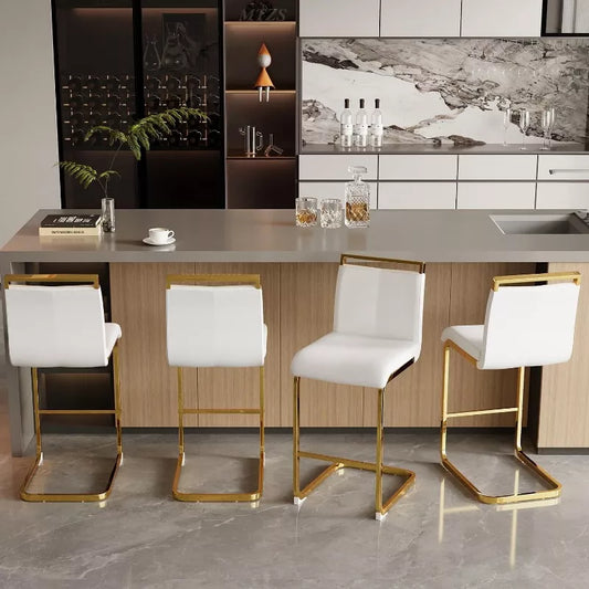 Gold Bar Stools Set of 4 with Back, 24″ White Island Chairs with Gold Legs - DSARD
