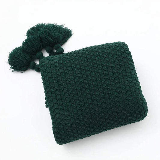Dark Green Knit Cashmere-Feel Shawl & Oversized Throw Blanket
