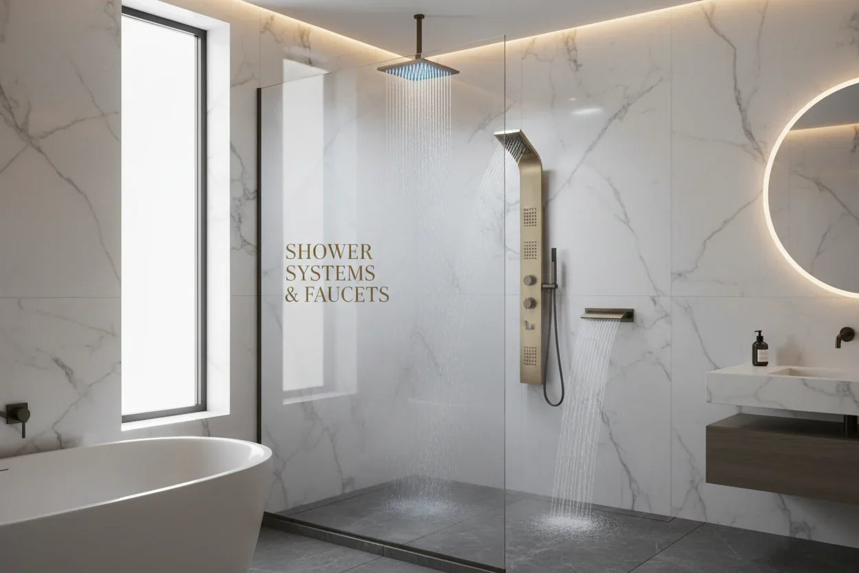 Premium Shower Systems & Faucets – Luxury Rainfall & Thermostatic Designs Transform...