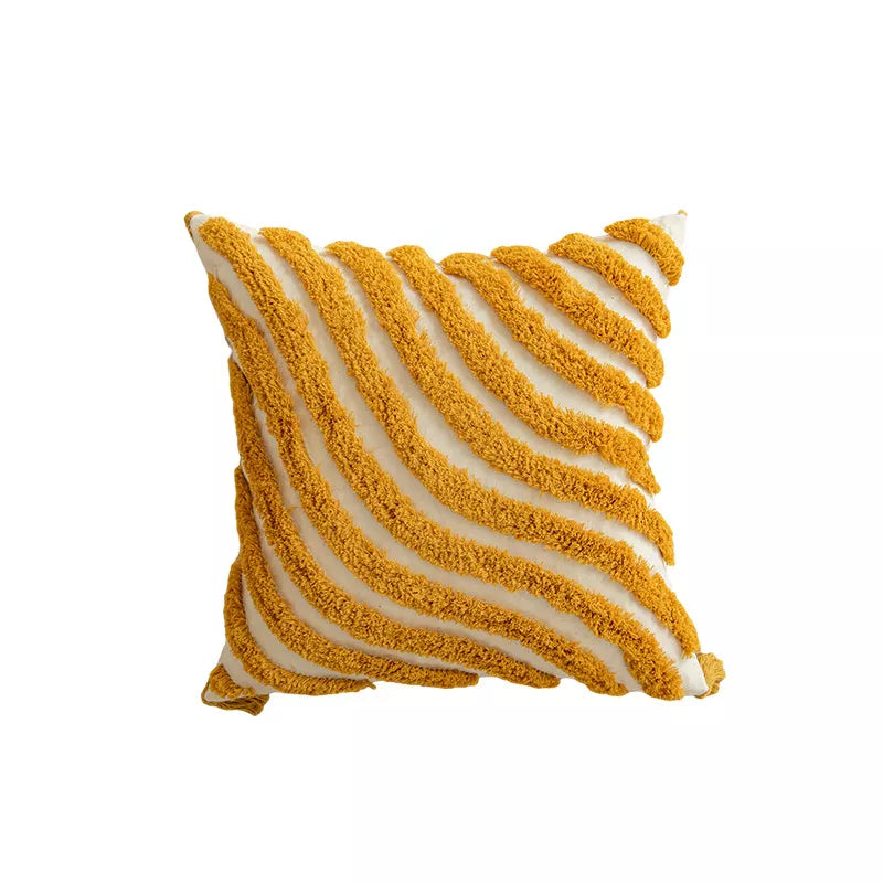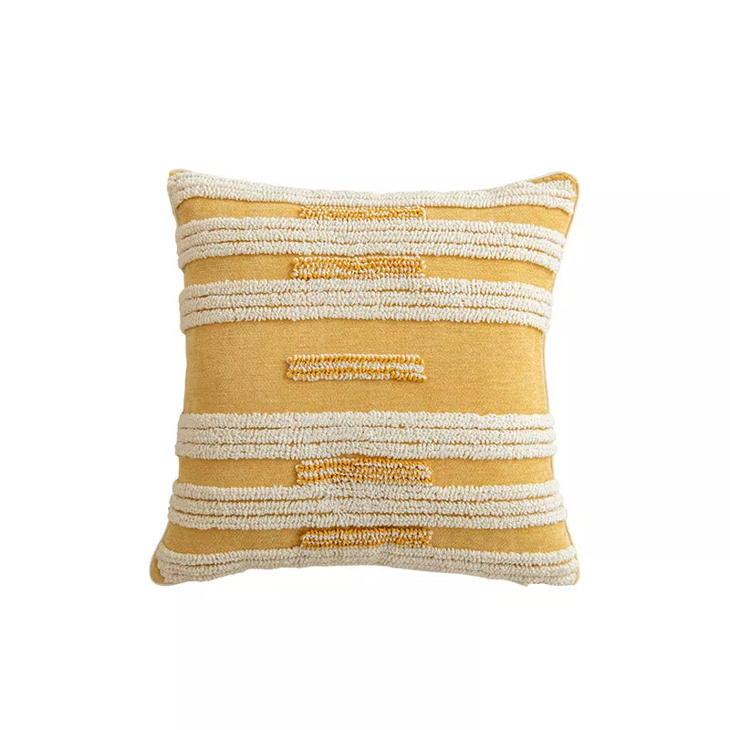 Made from breathable cotton fabric, this pillow cover feels soft to the touch yet is durable for everyday use. Available in two versatile sizes—12×20 inches and 18×18 inches—it’s easy to mix and match with your existing decor. The handcrafted knit weaving brings texture and depth, while the golden tones brighten up your space with a romantic glow.