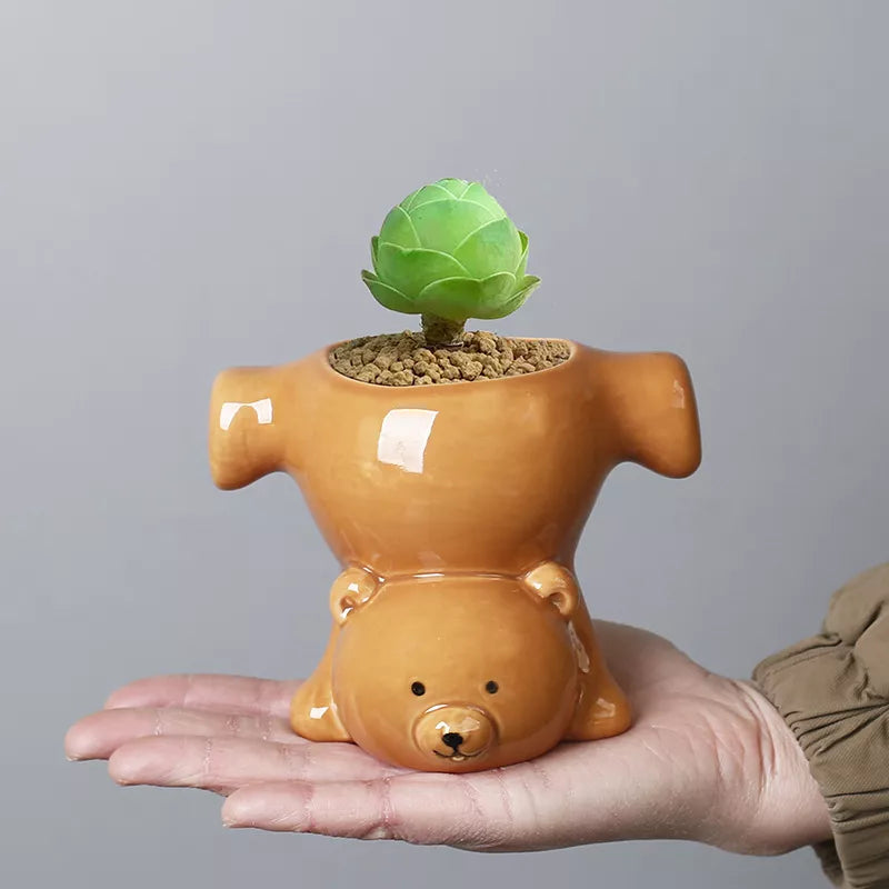 Transform your home or office with the Cartoon Inverted Bear Ceramic Flower Pot – a quirky and delightful way to showcase your favorite plants. This unique ceramic flower pot is designed to add a touch of fun and personality to any room. Featuring an adorable bear design, it offers a playful twist on traditional planters, making it a perfect addition to modern home decor.
