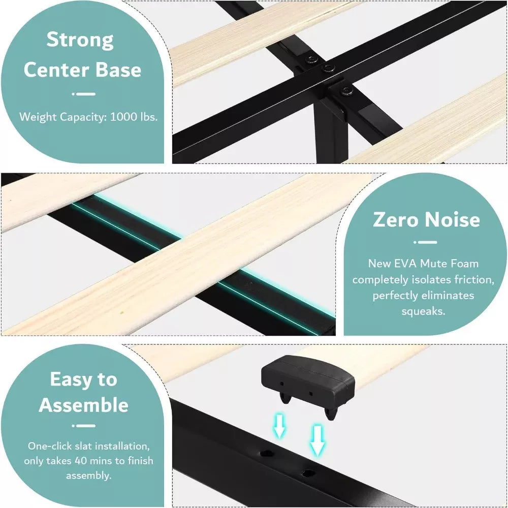 Sturdy & Noise-Free: Built with heavy-duty metal and 12 thick wooden slats, this bed frame offers a solid foundation that can support up to 800 lbs. Thanks to the EVA sponge on the slats, this bed is noise-free, so you won’t be disturbed by any creaks or squeaks when you move.
