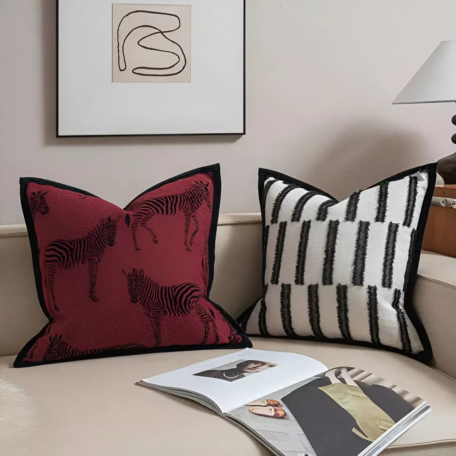 This design stands out with its unique blend of abstract geometry and zebra-inspired detailing, offering a bold yet elegant accent piece. It’s best used when you want to refresh your décor seasonally, add a pop of color, or elevate your seating area with a touch of luxury. The jacquard craftsmanship creates a premium look you can see and feel, making it a stylish upgrade to any home setting.