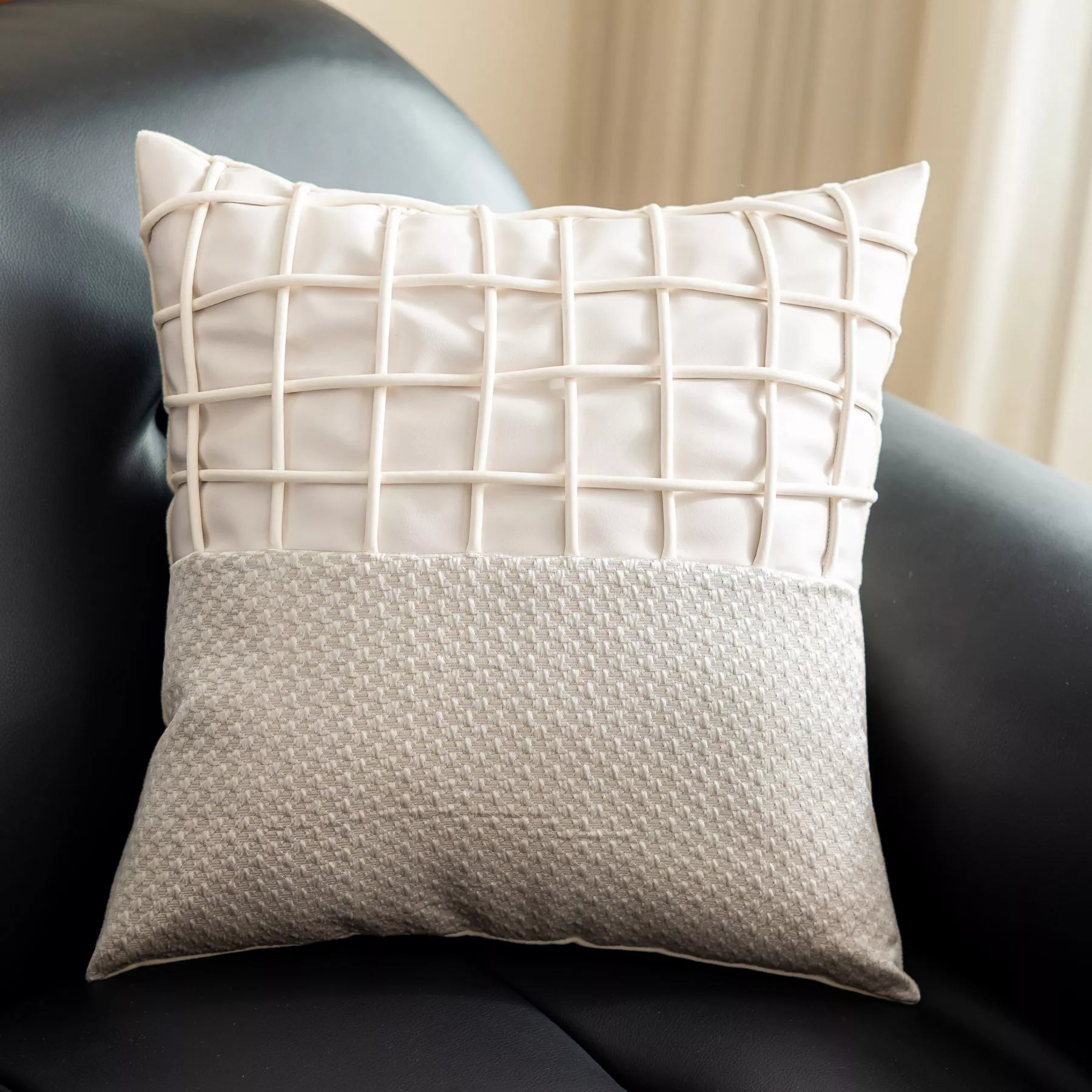 Luxury White Leather Plaid Throw Pillow Cover