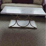 The table’s top tier features a luxurious faux marble finish, not only adding an element of sophistication but also boasting waterproof, scratch-resistant qualities for ease of maintenance. The stylish metal base, with its intricate circular and arc design, transforms what could be just a simple table into a remarkable piece of art. This coffee table doesn’t just stand—it captivates.