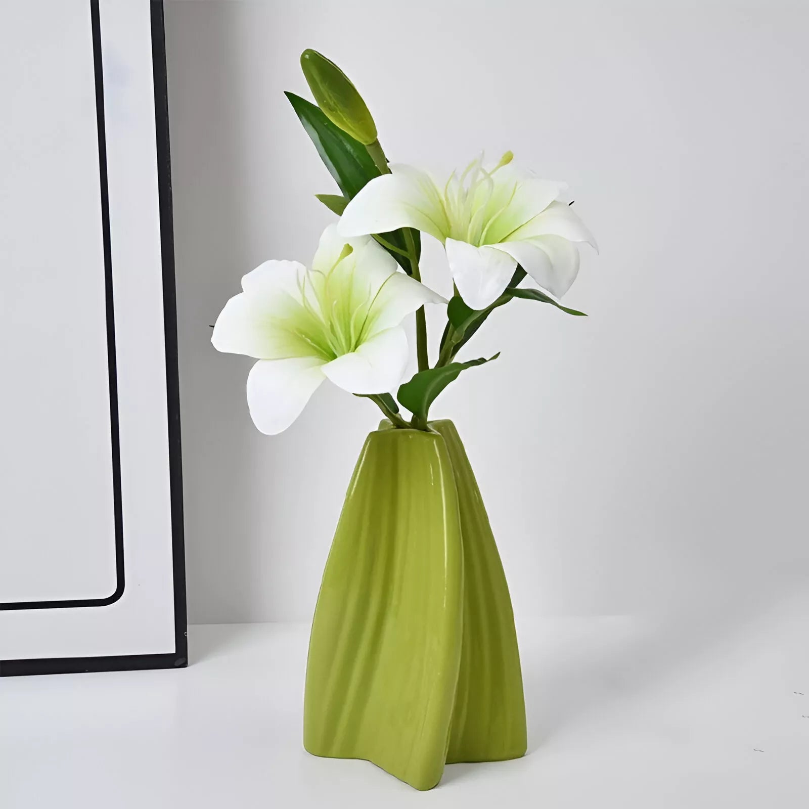 Elevate your home or office decor with this Unique Geometric Ceramic Vase, designed to impress from every angle. Featuring a striking four-pointed star shape with a smooth, glazed finish, this vase stands as a true conversation piece. Its rotating function adds movement and interactivity, letting you admire its beauty from all sides as it catches the light in dynamic ways. Handmade with precision, this vase blends modern aesthetics and everyday functionality, making it an ideal centerpiece for any stylish space.