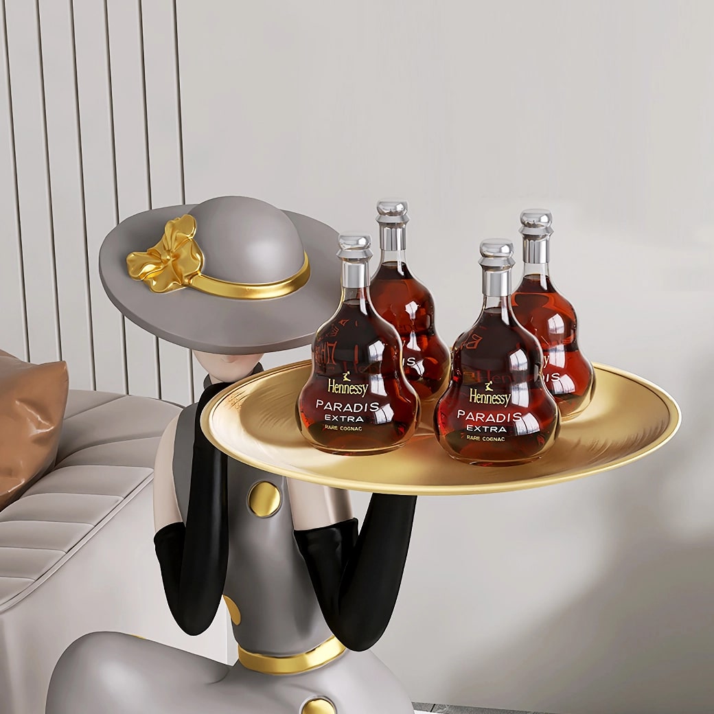 Perfect for storing and displaying everyday items, the tray can hold keys, watches, jewelry, glasses, and even lipstick. Whether placed in the living room, entrance, TV cabinet, or next to the sofa, this sculpture enhances the elegance of any space. Its fashionable and creative design makes it suitable for various household scenes, instantly elevating the decor and making a sophisticated statement.