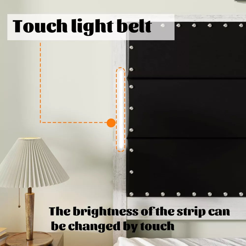 Adjustable LED Lighting: A smart LED light bar integrated into the headboard provides customizable brightness with a simple touch.