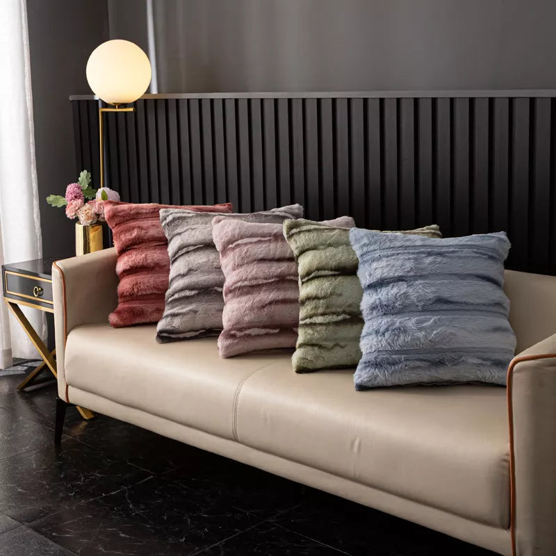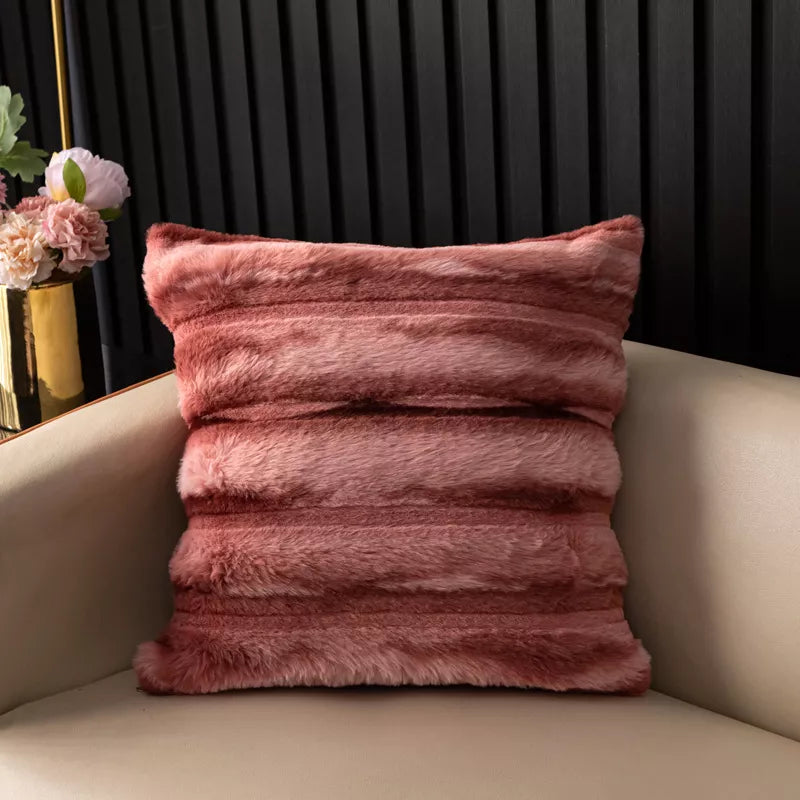 Striped Plush Rabbit Fur Throw Pillow Cover 18x18in Soft Cushion Case