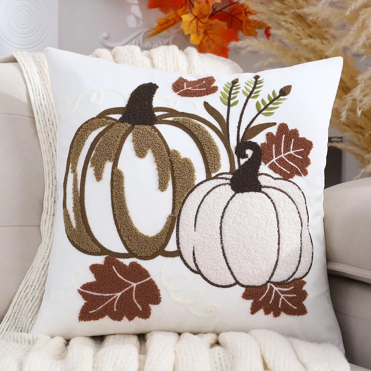 Elegant Embroidery: Detailed pumpkin embroidery adds a seasonal yet timeless charm, perfect for fall and Thanksgiving décor.